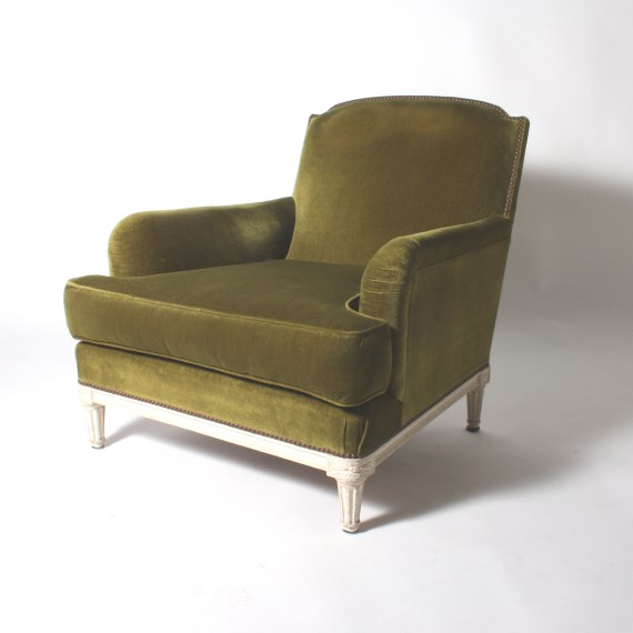 Characterized by its upholstered back, arms and armrests, as well as loose tailored seat, the traits of a French bergère chair highlight exposed wooden framing composed of moulded or carved beech that could be painted or gilded.